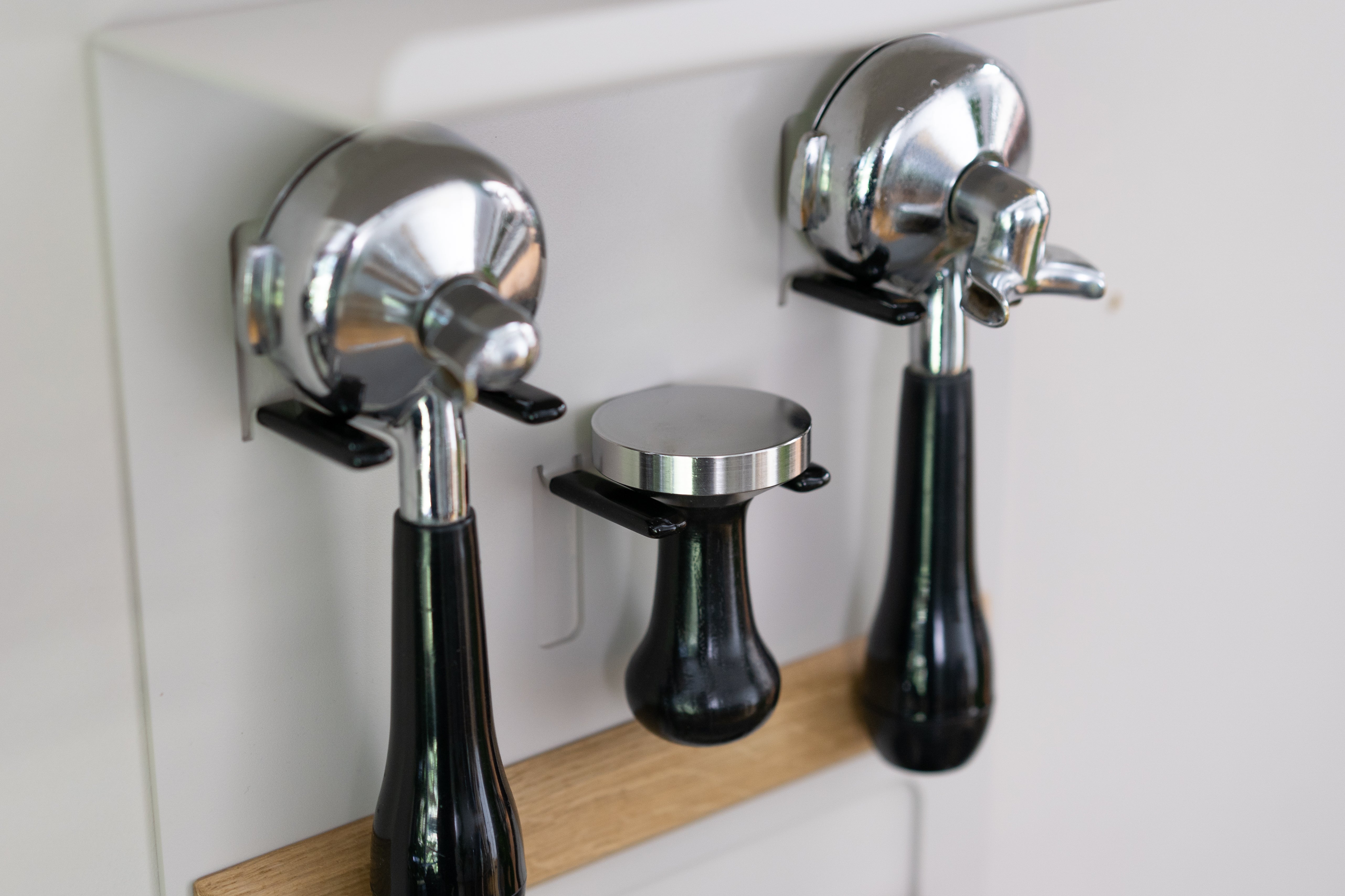 Beim Design des Boards wurde besonders auf die Key-Features geachtet, die den täglichen Gebrauch beeinflussen. Anti-Rutsch-Überzieher sorgen dafür, dass deine Siebträger schonend, sicher und geräuschlos eingehängt werden.
